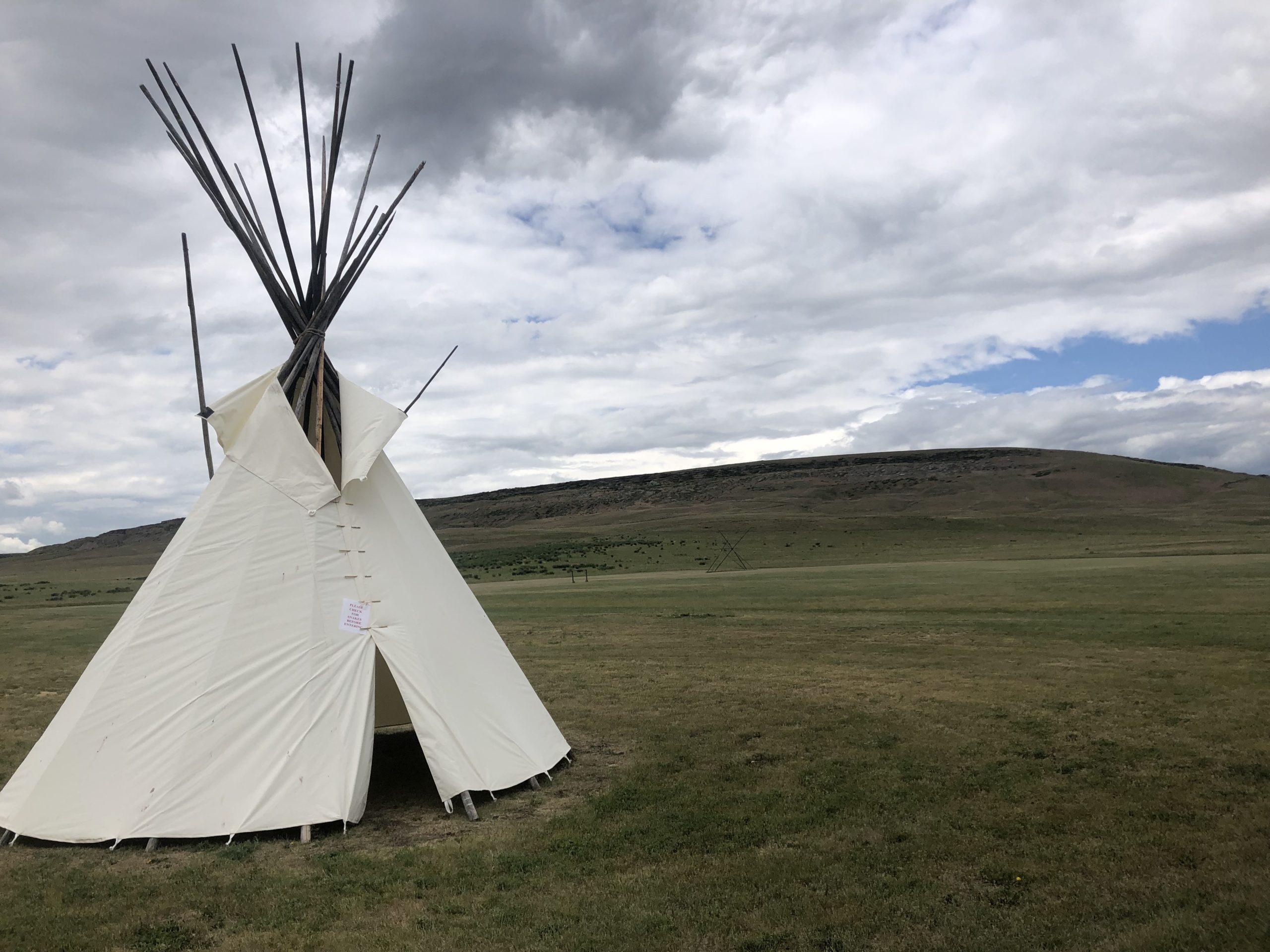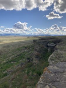 What all that really means is that I have the coolest job in the world. I’ll admit, I’m a bit biased though. There are no regular days, but we often find ourselves leading field trips to school groups, swearing in Junior Rangers, or leading guided hikes about plants and snakes. We get to teach visitors about the historical and ecological significance of one of the largest buffalo jumps in North America. Buffalo jumps are an ingenious use of the land to gather the resources necessary for survival. We work to improve park land by maintaining our 7 miles of trails and removing noxious weeds to help the prairie thrive. We also partner with local organizations and businesses, so everyone has access to the park. All while taking in some of the most glorious views of the mountain ranges, open skies, and sunsets over the cliffs. Phew! All in a days’ work.