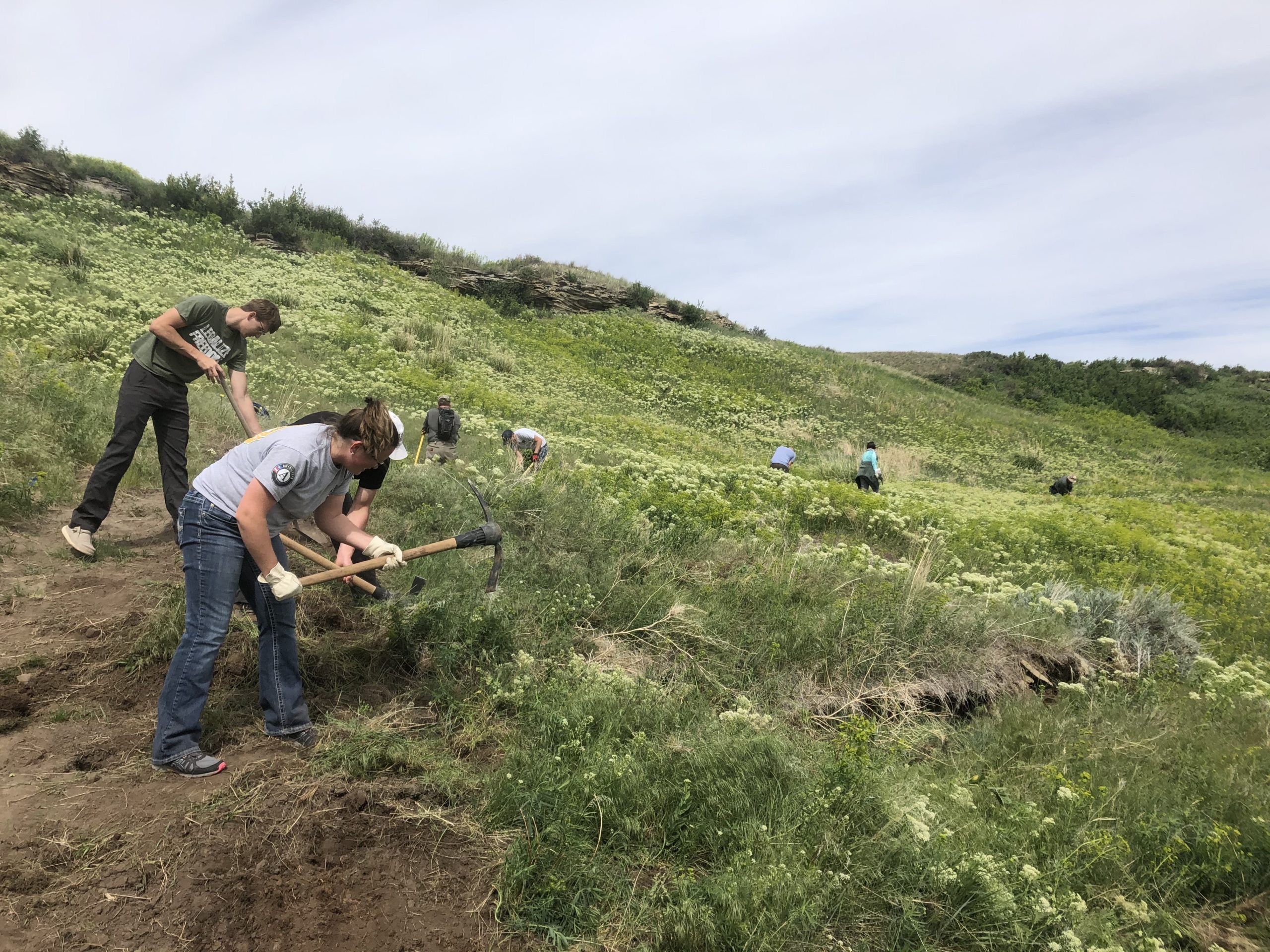 So, I took the jump. After graduating from college this past December, the next challenge was finding a job in the midst of a pandemic. After a few lucky coincidences, the Montana State Parks AmeriCorps program brought me to Great Falls and First Peoples Buffalo Jump State Park. AmeriCorps is the domestic version of the Peace Corps, a voluntary term of service to help others and meet critical needs in a community including education, public safety, health care, and environmental protection. I’m currently serving an 11-month term at the buffalo jump and do a variety of activities, most related to education and interpretation. While my role varies from day to day, my most pressing duties are, broadly, to provide education and interpretation, recruit volunteers, engage the community, & improve park land.
