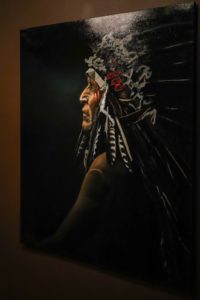 I met with Jessica, The Executive Assistant, before meeting with Duane. She is in charge of the Russell Runway Show during Western Art Week, which showcases renowned fashion and jewelry designers from Montana and across the country. This year, El Wencho will be playing, and did someone say mimosas? (Note to self, make Jessica my best friend and go to the runway show). Jessica and I stopped at Ben Pease‘s oil painting, a part of The Russell’s Live Auction, Apsáalooke Pipe Carrier “Two Leggings — Iisáatxaluaásh.” The oil painting is striking and dramatic. I fell in love with it immediately. Then I saw the estimated price for the auction and realized, I may be the person that just gets to enjoy it during the exhibit and not hang in on my wall at home.